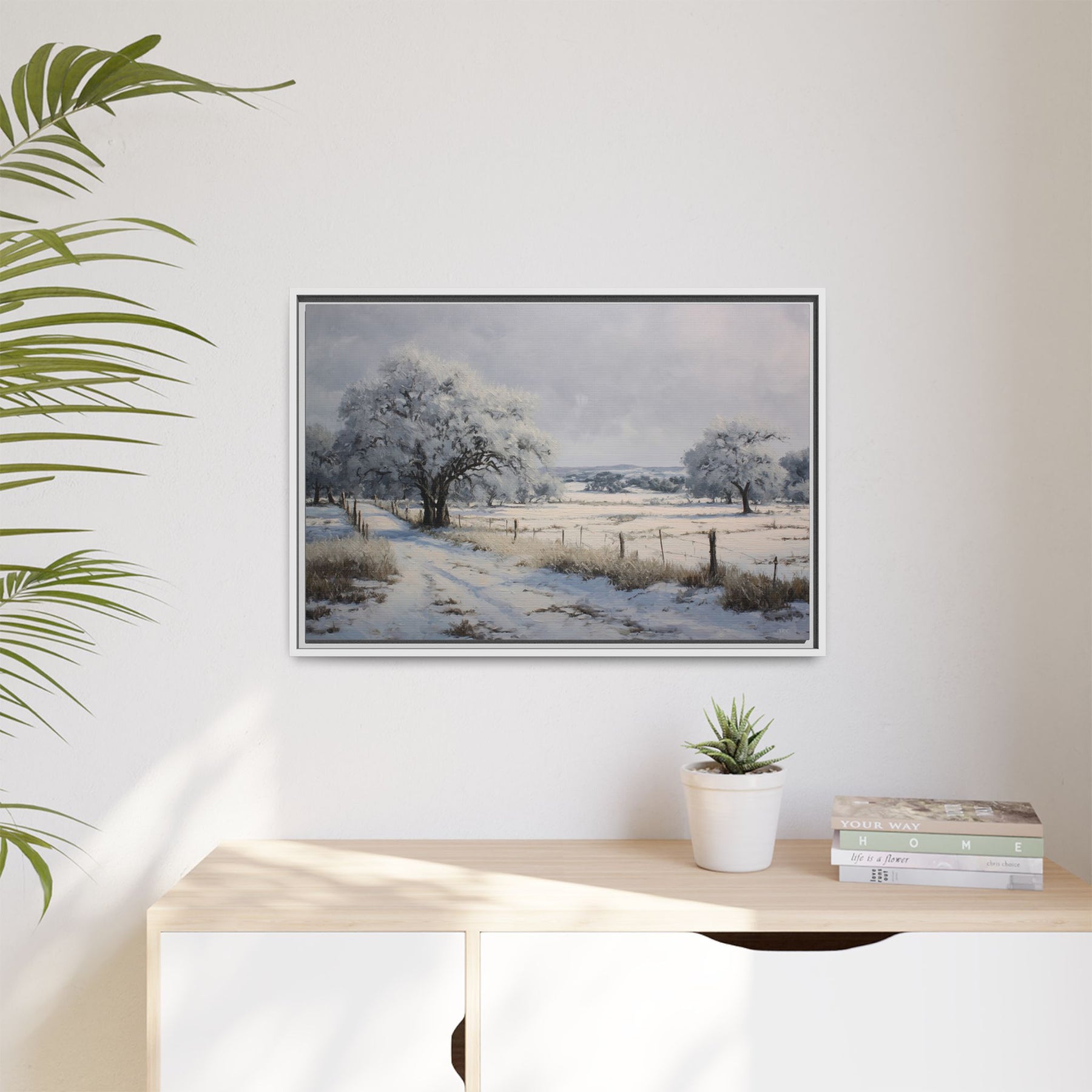 This piece brings a sense of calm and renewal to any space. The soft palette and still composition make it ideal for farmhouse, rustic, or modern settings alike — a touch of winter serenity that feels timeless and true.