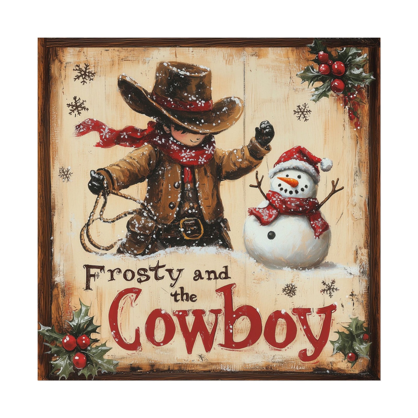 These prints bring together everything we love about Christmas on the Western frontier — vintage holiday signs, glowing porch scenes, snowy ranch nights, and quiet cowboy moments. Each piece is offered here as a fine art print for folks who prefer to choose their own frame or create a custom display at home.