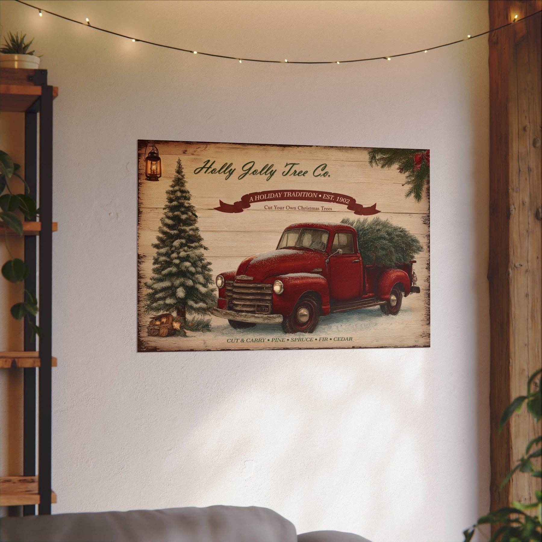 Display it above the mantel, in an entryway, or as part of a cozy holiday vignette. Wherever it hangs, this art print adds a touch of nostalgic cheer and ranch-town magic to your home.