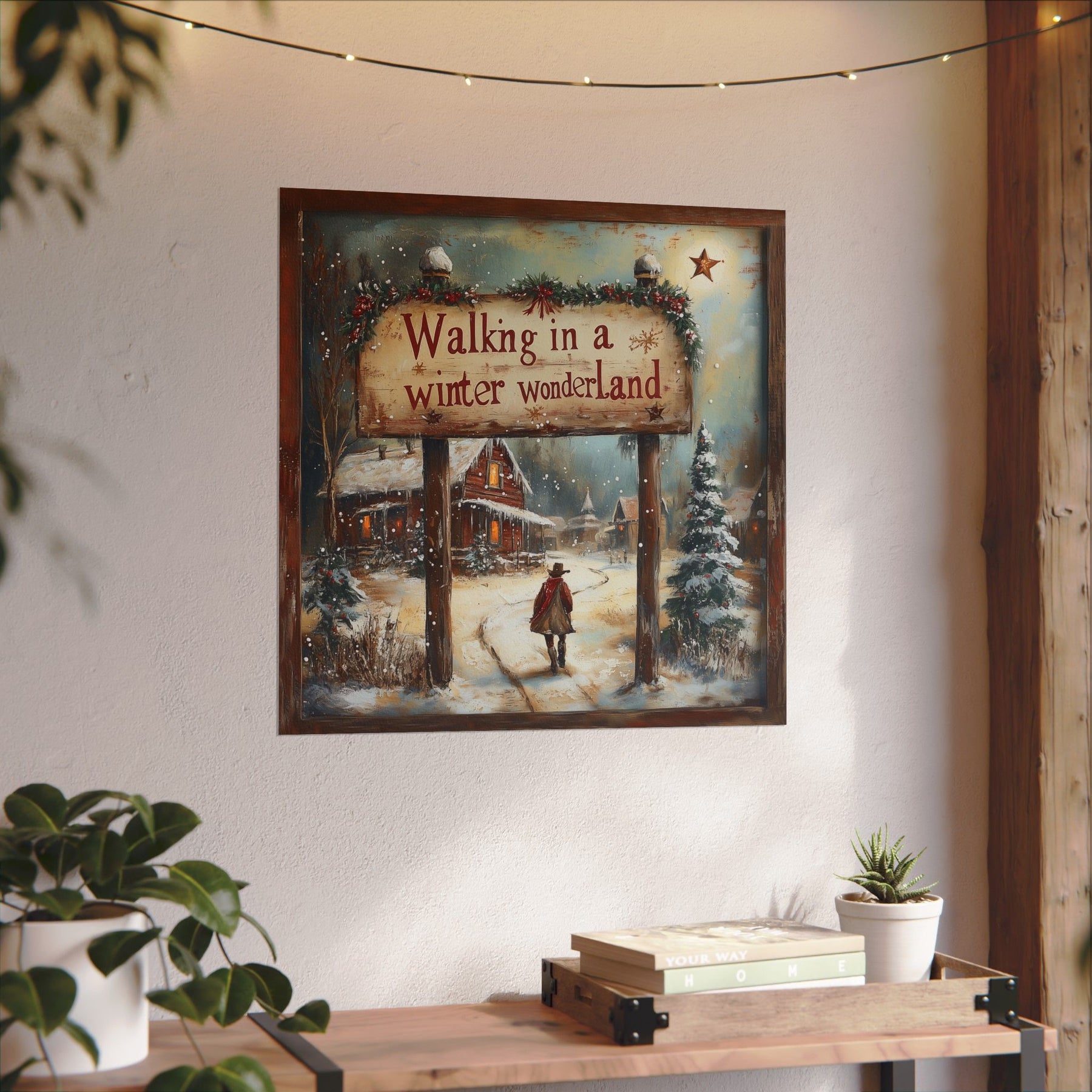 Snow drifts softly through a Western town as a lone cowboy makes his way down a lantern-lit trail. Walking in a Winter Wonderland captures that quiet stillness only winter can bring — the glow of cabin lights, the hush of fresh snow, and the simple peace of coming home.