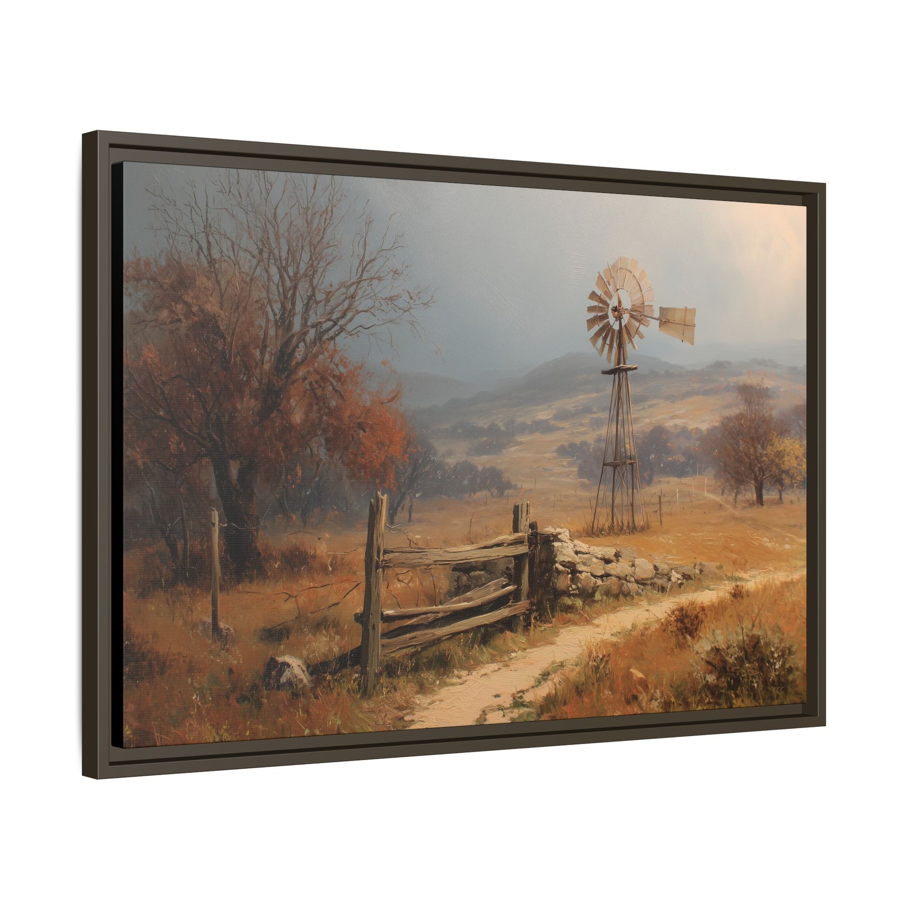 At the edge of the Balcones hills, an autumn breeze drifts across the plains where an old windmill stands tall and steady. The weathered gate and stone fence mark the passage of generations, reminders of cattle drives, family homesteads, and the quiet strength of Texas land.