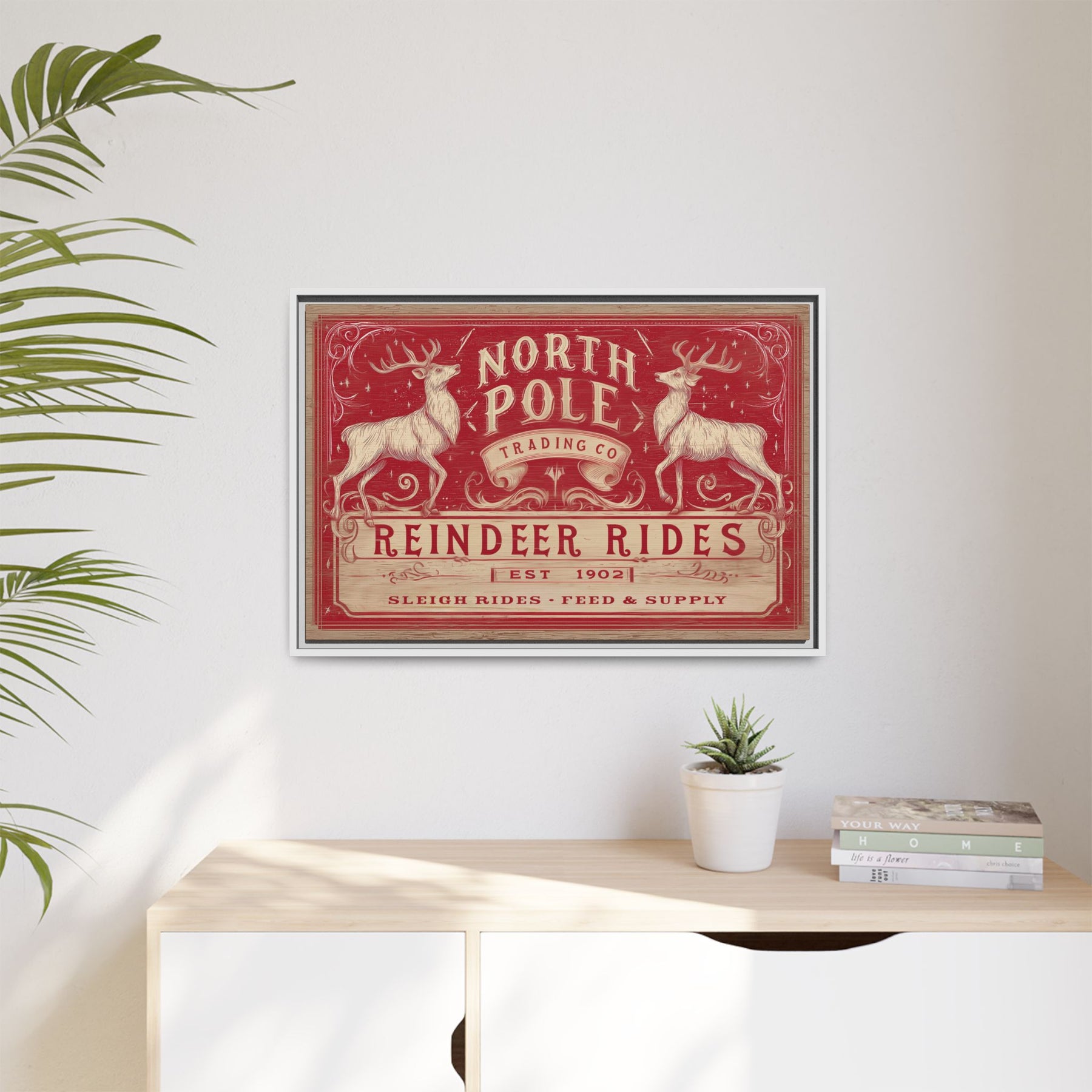 Add a little Western soul to your walls with this richly detailed canvas sign — made to bring the spirit of the season (and the grit of the West) into any room. Each piece blends vintage charm with bold color and painterly texture, perfect for cozy cabins, modern ranch homes, or festive holiday décor. Whether it’s “Mrs. Claus Bakery” or “Reindeer Rides,” these canvas signs make any wall feel like home.