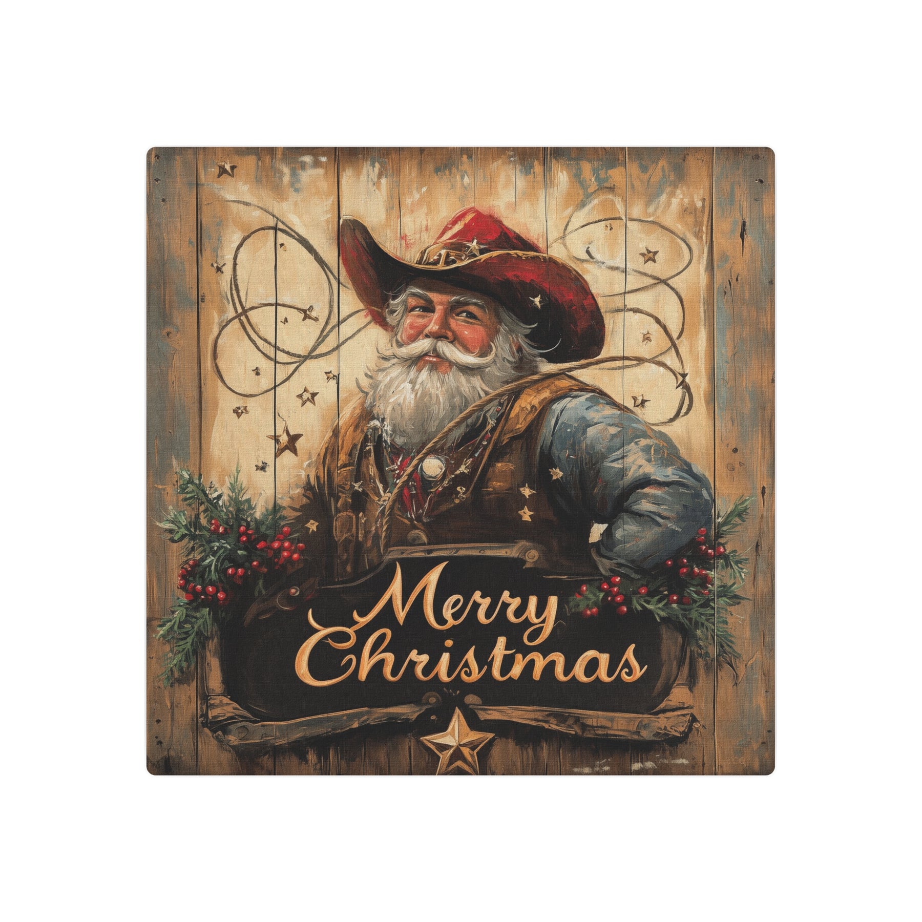 Lone Star Santa brings Texas pride to Christmas with a weathered wood look and the calm grin of a cowboy who’s earned his cocoa. His crimson coat and broad hat nod to the West, where the holidays shine under open skies and warm hearths.